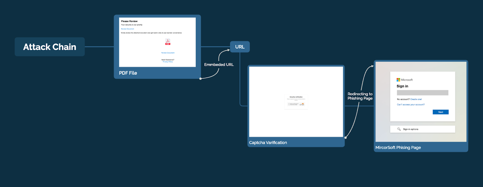 Figure 5: Phishing Flow Diagram - PDF -> Redirect -> Turnstile -> Landing Page